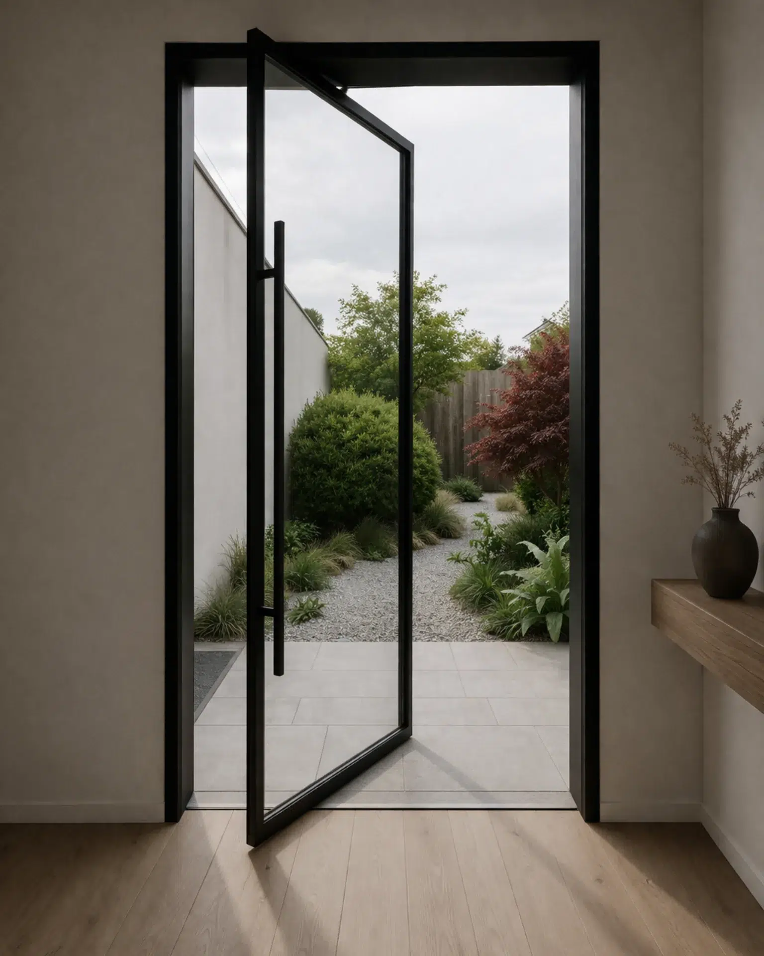 Make a bold architectural statement with the effortless, oversized elegance of a Pivot Door. Rotating on a hidden vertical axis, these doors offer a weightless, fluid motion that redefines the entrance experience for modern homes. Designed to accommodate larger-than-standard openings, they provide a seamless transition between spaces while maximizing natural light through expansive glass panels. Combining minimalist aesthetics with heavy-duty performance, our pivot doors offer a sophisticated focal point that balances cutting-edge design with superior thermal stability.